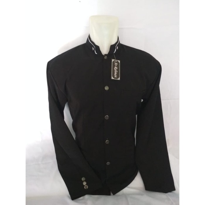 Jual gudang fashion baju koko lengan panjang hitam polos hitam.